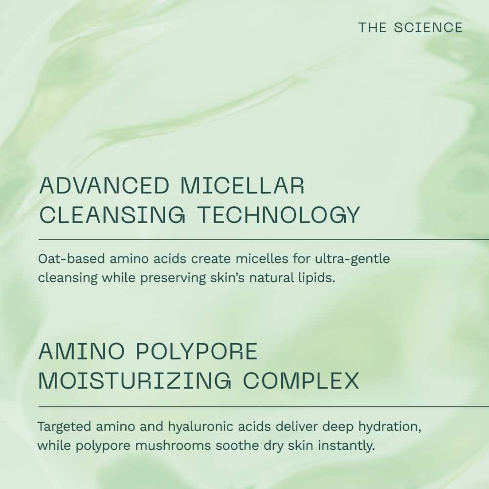 A cleansing + hydrating Mist that combines groundbreaking Advanced Micellar Cleansing Technology and Amino Polypore Moisturizing Complex to deliver micellar water for cleansing with lasting moisturization offering a lighter, portable option for refreshing hydration anytime, anywhere.